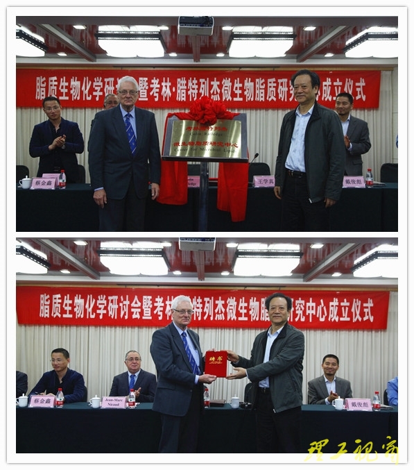 本网讯 10月16日至17日,国际脂质生物化学研讨会暨考林·腊特列杰微生物脂质研究中心成立仪式在我校举行,校党委常委、副校长王学真,英国赫尔大学考林·腊特列杰教授出席仪式并为中心揭牌。农业工程与食品科学学院院长易维明主持仪式。