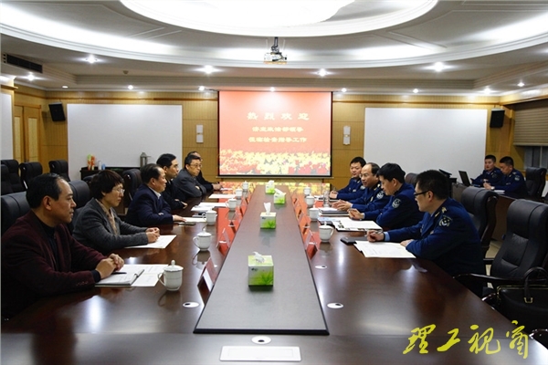本网讯 【视频链接】11月19日下午,济南军区空军政治部副主任王远明一行来我校调研指导工作。校党委书记都光珍、校长吕传毅、副校长刘国华在鸿远楼九楼会议室会见了王远明一行,并进行了座谈。