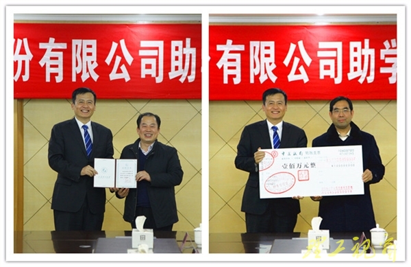 仪式在鸿远楼九楼会议室举行。吕传毅代表学校接受了捐赠,都光珍向刘子斌颁发了捐赠证书。