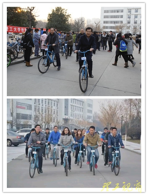 本网讯 12月28日下午,我校校园公共自行车启动仪式在逸夫图书馆西侧广场举行,校园公共自行车项目正式运行。副校长张祥云出席启动仪式,并和参加仪式的相关部门、学院负责人及学生一同骑行公共自行车。