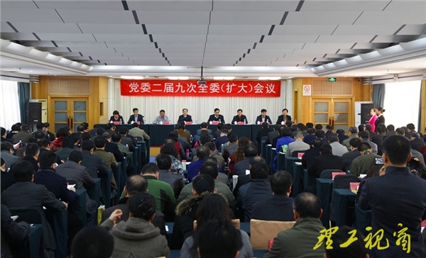 本网讯 【视频连接】2月26日,学校召开校党委二届九次全委(扩大)会议,听取了党委常委会2015年工作报告、学校“十三五”发展规划纲要的说明,分组讨论了《“十三五”发展规划纲要(征求意见稿)》和年度工作要点,并安排部署了2016年工作任务。校党委委员、纪委委员、处级干部、校学术委员会成员、各学院教授委员会主任、各民主党派负责人参加会议。
