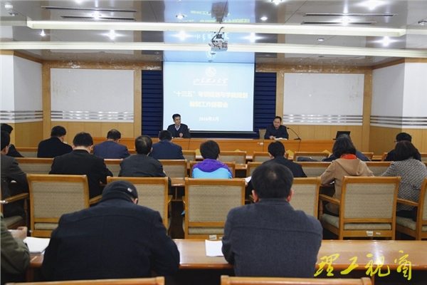 本网讯 【视频链接】3月12日学校召开三届二次教代会,审议通过了《“十三五”发展规划纲要(草案)》。为切实做好各专项规划与学院规划编制工作,保证学校总体规划的有效实施,3月21日下午,校党委常委、副校长邹广德在鸿远楼一楼报告厅主持召开“十三五”专项规划与学院规划编制工作部署会,由此,编制工作正式启动。“十三五”专项规划编制责任单位负责人,各学院党总支(党委)书记、院长参加会议。