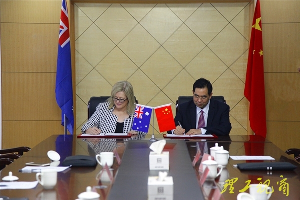 吕传毅和麦克米伦分别代表两校签署了商科“3+1+1”本硕连读项目协议。签约仪式后,吕传毅陪同客人参观了分析测试中心。