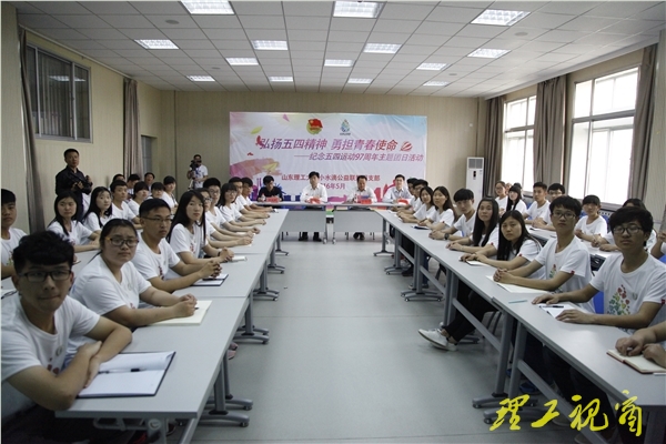 本网讯 5月5日下午,我校小水滴公益联盟团支部于1号教学楼405教室举办“弘扬五四精神 勇担青春使命”主题团日活动。团省委副书记、省青联主席任海涛,团淄博市委党组成员、秘书长张公博及校团委、计算机科学与技术学院相关负责人一同参加了活动。