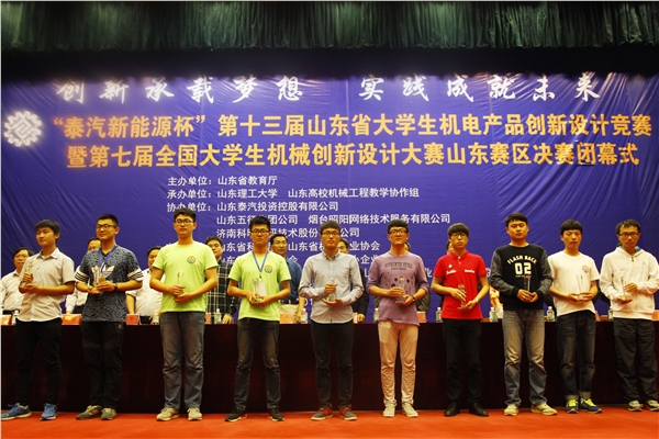 本次比赛由山东省教育厅主办,我校和山东高校机械工程教学协作组承办,山东泰汽投资控股有限公司协办。作品内容涉及机械、电子、车辆、化工、纺织、轻工、控制等行业,参赛内容涉及面广、选题新颖、设计合理,具有较强的创新性和实用性。