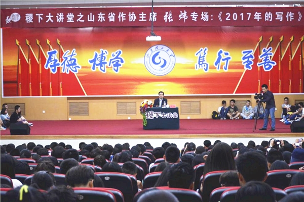本网讯 5月18日晚,山东省作协主席、著名作家张炜莅临我校稷下大讲堂,于3号教学楼报告厅为理工学子带来一场“2017年的写作”专场讲座。