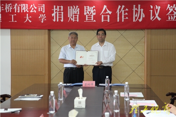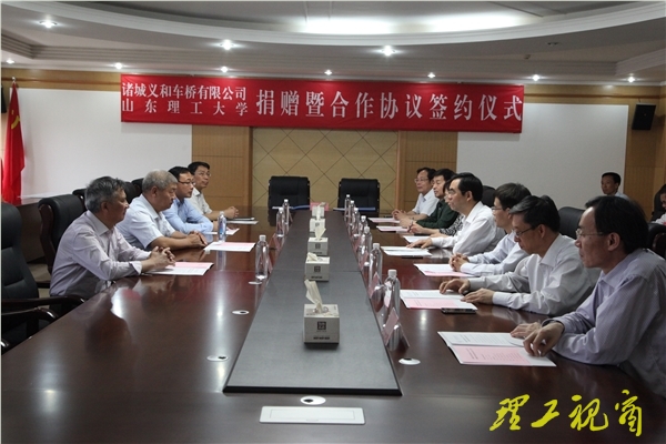 本网讯 5月21日上午,诸城义和车桥有限公司董事长陈忠义一行来到我校,向学校捐赠助学经费50万元,与学校签订合作协议。校长吕传毅,副校长邹广德、刘国华出席捐赠仪式,相关部门、学院负责人参加了仪式。