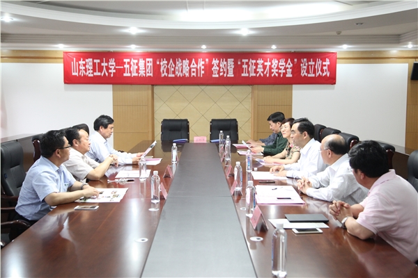 本网讯 5月25日下午,山东五征集团有限公司与我校校企战略合作暨“五征英才奖学金”捐赠签约仪式在我校举行,五征集团董事长、总经理姜卫东,校长吕传毅、副校长杜瑞成出席仪式,副校长刘国华主持仪式,五征集团及我校相关部门、学院负责人参加仪式。