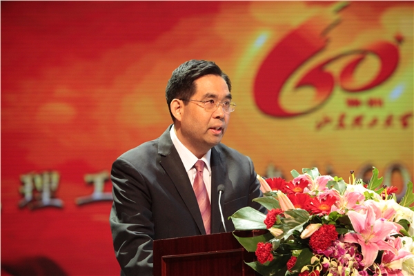 校长吕传毅首先致辞。他满怀深情地回顾了学校60年的办学历程,总结了学校60年创新发展取得的辉煌成就,表达了对各级领导、社会各界朋友和广大校友关心支持学校建设发展的感激之情,展望了学校未来发展的美好蓝图。他说,当前新的形势对教育工作提出了新的要求,高等教育进入质量提高、内涵发展的新时期,学校也站在开启新甲子的历史起点上,我们将以新的发展理念为引领,以提高教育质量为主题,以特色发展为主线,弘扬优良办学传统,全力推进实施“十三五”发展规划,努力谱写学校改革发展更加灿烂辉煌的新篇章。