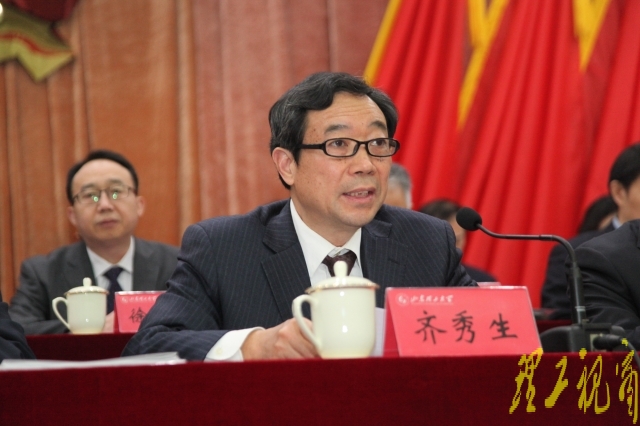 齐秀生代表省委组织部、省委高校工委和省教育厅党组,对大会的召开表示热烈的祝贺!向广大党员和师生员工致以崇高的敬意和亲切的慰问!他在讲话中充分肯定了我校第二次党代会以来取得的成绩,希望新一届党委、纪委,高举中国特色社会主义伟大旗帜,全面从严治党,切实加强党的建设,为学校发展提供坚强保障;始终坚持把立德树人作为根本任务,不断提高人才培养质量;积极推进综合改革,加快高水平大学建设步伐。希望新一届党委领导班子团结带领广大党员、干部和师生员工,坚持高点定位,全面深化综合改革,深入实施人才优先发展战略,加快推进“双一流”建设,着力提升人才培养质量、科学研究水平和服务经济社会发展能力,努力建设特色鲜明的高水平大学,为经济文化强省建设作出应有的贡献。