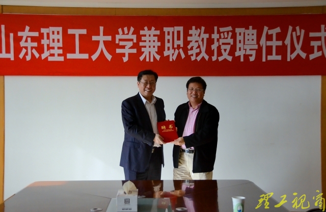 本网讯 4月17日,学校在鸿远楼八楼会议室举行聘任仪式,聘任我校校友、湖南大学博士生导师李庆国教授为我校兼职教授,校党委常委、副校长易维明出席仪式并为李庆国颁发聘书。人事处、理学院负责人及师生代表参加聘任仪式。