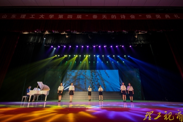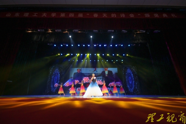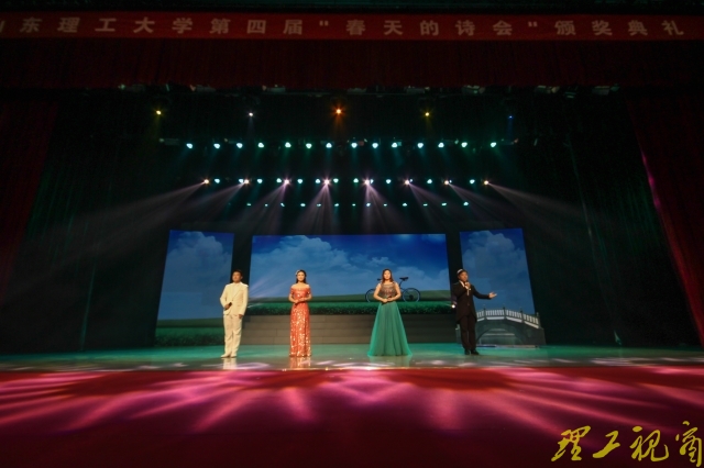 颁奖典礼在“春天的诗会”主题曲《春与诗》中拉开序幕,整个晚会分“序”、“春和景明”、“春时暮云”、“寸草春晖”、“春风化雨”、“春华秋实”六个篇章。《春天的诗》、《三月的风》、《春天的临终》、《春天的脚步》字里行间无不透露着春天的羞涩、儒雅,将全世界点缀的色彩斑斓;“大江东去,浪淘尽、千古风流人物”一首苏轼的《大江东去》气势磅礴,将晚会推向了高潮;《偷喝爷爷酿的酒》、《老院》、《故乡的落花生》掀起了我们对儿时的回忆和对故乡的思念,想起了记忆中的旧时光—顽皮、淘气,渗透着对家人的依赖;《我的英雄》、《麦田》、《你是人间的四月天》、《我的母亲》等短小精美的诗句,透露着浓烈的亲情与拳拳之心,“在你的陪伴中,我走过春秋又一夏,如今你不在,只有岁月陪我走”,将感恩、感谢、愧疚动情完美的表达;全国第六届金话筒获得者,中国十佳制片人霍小语朗诵的一首《礼物》,献给母校、献给奋力拼搏的莘莘学子。《七绝·颂校园百花绽放》《三生三世十里鲁东》《在理工大遇见你》《随你把万紫千红看》写出了对母校的眷眷之情,“你群居明媚莞尔一笑,氤氲不尽却是我的泪花,筵席终有散时,我仍铭记那晚照清空。亲爱的理工大,你的万紫千红永存在心中!”