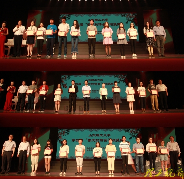 “春天的诗会”已成为我校师生弘扬传统文化,传承最美诗歌,守护精神家园,抒发爱国情操的一张名片。由党委研究生工作部和校报社主办的“春天的诗会”诗歌征集活动自1月初启动以来,共收到作品410首,经专家评审,评选出一等奖15首,二等奖25首,三等奖40首,佳作奖5首,特别奖2首。晚会现场朗诵了19首优秀作品。