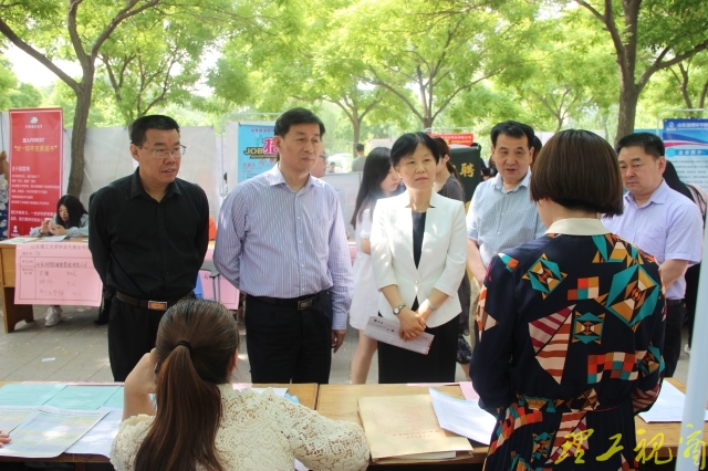 招聘会期间,淄博市政协副主席、市工商联主席、市总商会会长毕红卫, 市工商联副主席、市总商会副会长周勇,我校副校长魏修亭,以及招生就业处相关负责人等出席招聘会,并与企业招聘人员和应聘学生进行亲切交谈,详细询问企业需求情况和毕业生基本诉求,鼓励毕业生抓住机遇,积极就业。