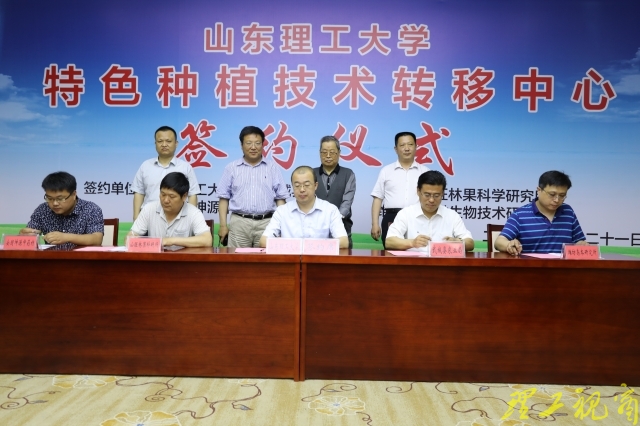 科技处处长陈志伟代表学校与武城县农业局、临朐县山旺林果科学研究所、安国市坤源中药材销售公司、潍坊岛本微生物技术研究所签订共建合作协议。
