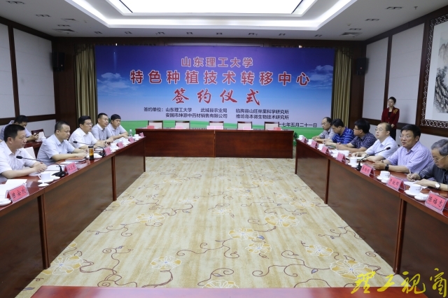 本网讯 5月21日上午,山东理工大学特色种植技术转移中心签约仪式在武城县武城宾馆举行。副校长易维明,武城县委副书记杜卫东出席签约仪式。仪式由县委常委、统战部长刘呈辉主持。我校科技处和武城县组织部、农业局、有关乡镇负责同志,我校选派武城的“第一书记”和特色种植技术转移中心合作单位负责人参加会议。
