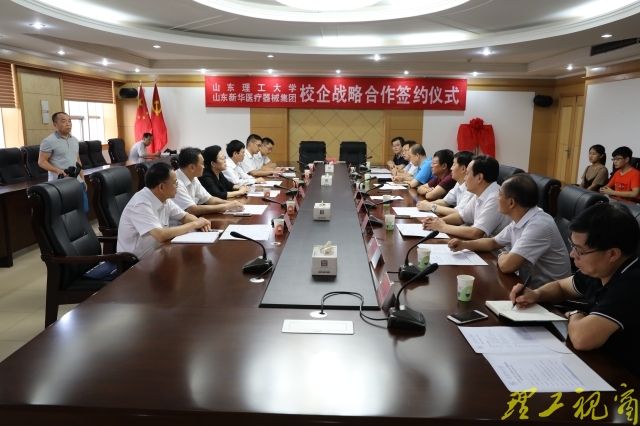 本网讯 7月3日下午,我校与山东新华医疗器械集团举行仪式,签订校企战略合作协议,双方约定,5年协议有效期内,在建立博士后创新实践基地、建立“新华健康产业双创平台”、深化新产品研发合作、加强产业基金与高校孵化项目对接、探索校企人才协同培养机制等领域开展深度战略合作。