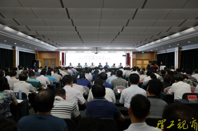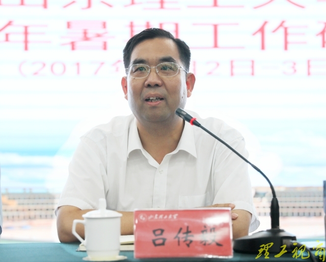 吕传毅最后强调,山东理工大学的事业是火热的事业、是激动人心的事业,让我们进一步解放思想,高点定位,加快发展,广大干部一定要把纪律挺在前面、把师生装在心中、把责任扛在肩上、把学习落到实处,为早日建成有特色、高水平、国内知名的教学研究型大学贡献各自的力量,以优异成绩迎接党的十九大胜利召开。