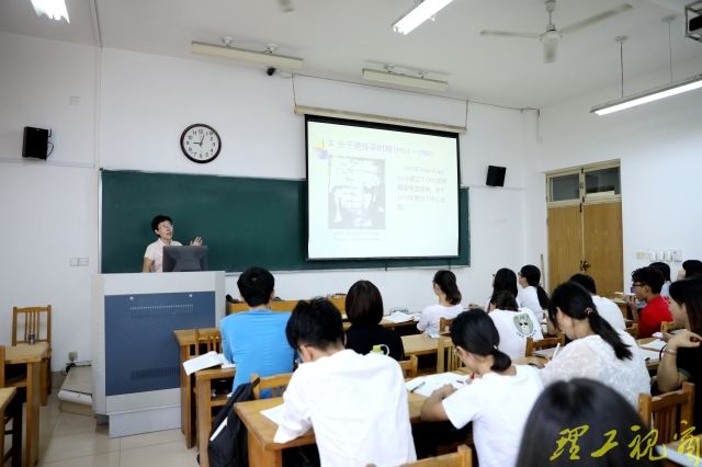 第二节课,他来到13号教学楼220教室,听了生命科学学院宋林霞老师的“遗传学”课程。人类为什么会变老?孩子为什么更像爸爸?身材与基因有关吗?一系列与生活息息相关的话题,瞬间引起了学生对遗传学的兴趣。显然,为了增强课堂的吸引力,宋老师在暑假期间做足了功课。吕传毅了解到生命科学学院的老师都会在开课之前建一个课程微信群,便于为学生答疑解惑。“这有利于学生的课程学习与交流,应该得到推广。”他说。
