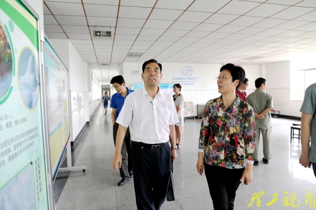 随后,吕传毅到化学化工学院考察了办公、学习环境,并与院领导和老师们作了交流。化工学院的走廊里焕然一新,摆放着供学生学习的桌椅,墙上张贴着励志标语,充满了文化气息。吕传毅看到后笑着说:“文化不是文科学院的专属,理工科学院也要有文化!”