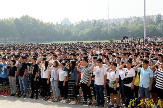 最后,全体新生郑重宣誓:牢记历史使命,树立远大理想,践行“厚德、博学、笃行、至善”的校训,文明修身、诚实守信,求知创新、勤于实践,遵纪守法、团结友爱,为实现中华民族的伟大复兴而努力学习。