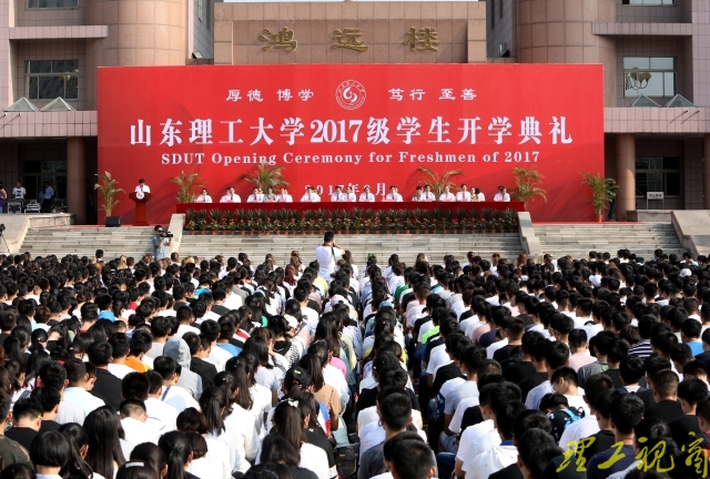 本网讯 硕果飘香季,金秋迎新时。9月11日上午,学校在鸿远楼前广场隆重举行2017级普通本专科学生、研究生、留学生开学典礼,热烈欢迎9000余名新同学昂首迈进山理工,开启人生新征程。