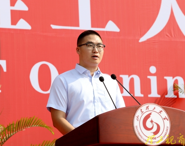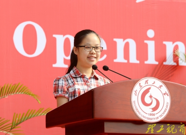 建筑工程学院2017级本科生鞠孜涵代表新生表达了进入山东理工大学的激动心情以及对大学生活的美好憧憬,表示将勇敢肩负起时代赋予的重任,保持敢为人先的勇气和永不言退的锐气,励志勤学,刻苦磨炼,朝着学校提出的“五有”人才目标奋力奔跑,以实际行动为中华民族伟大复兴中国梦贡献自己的力量。