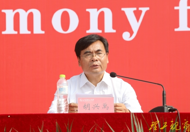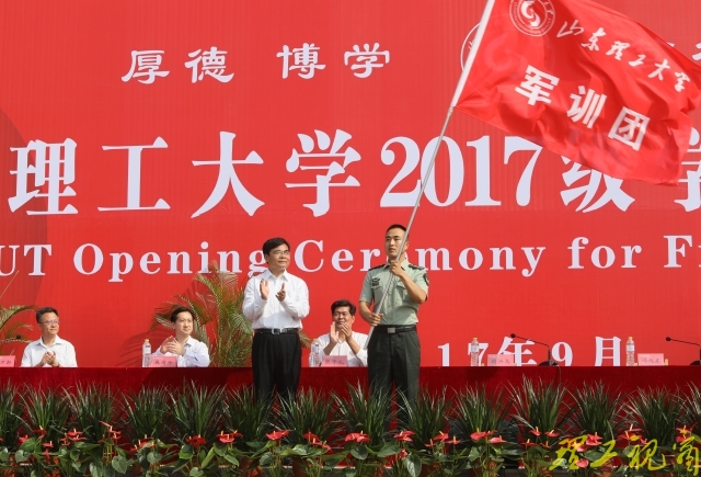 胡兴禹代表学校向军训团授旗,并就做好此次军训工作向全体参训师生提出四点希望和要求: