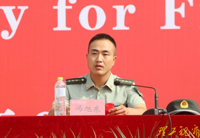 冯旭东在讲话中希望全体参训教官按照军训计划和要求,严密组织,严格训练,严守纪律,高标准完成军训任务。