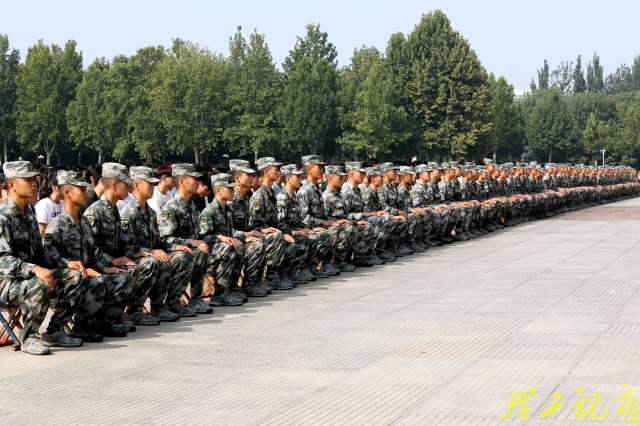 伴随着铿锵激昂的《中国人民解放军进行曲》,2017级新生开始了他们的入学第一课,他们将接受为期12天的军事技能训练。
