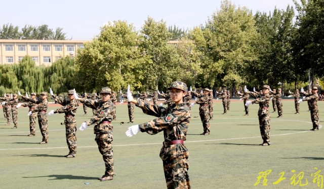 在东校区,四个军训方阵还进行了汇报表演。女子匕首操表演气势如虹,军体拳表演刚劲有力,正规化养成表演整齐有序,交通指挥表演动作规范,现场不时赢得阵阵喝彩和掌声。