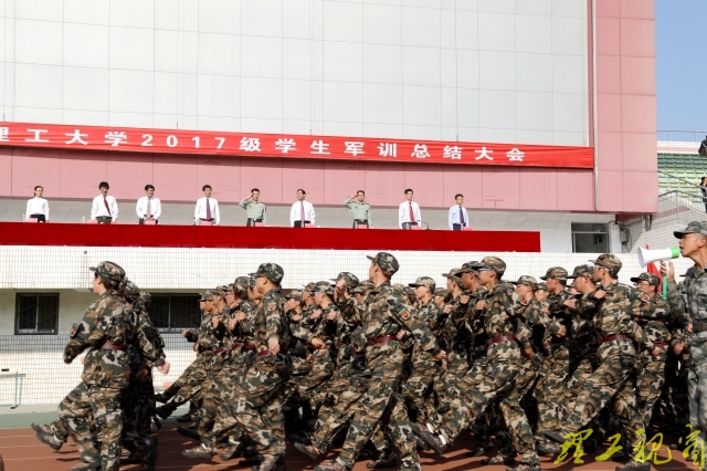 本报讯 丹桂飘香日,沙场秋点兵。昂首展英姿,阔步再起航。9月21日上午,我校2017级学生军训总结大会分别在西校区中心体育场和东校区体育场举行。8910名参训学生以顽强的毅力、过硬的素质和优异的成绩,展示了为期12天的军训成果,交上了入学第一课的合格答卷。
