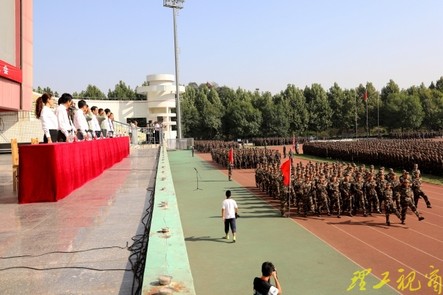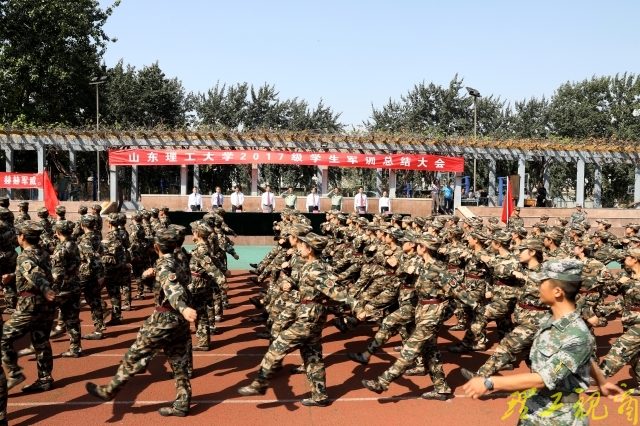 检阅完毕后,军训团进行了分列式表演,参训学员军姿挺拔、步伐矫健、口号嘹亮、士气高昂,尽展新一代山理工学子的青春风采和精神风貌。