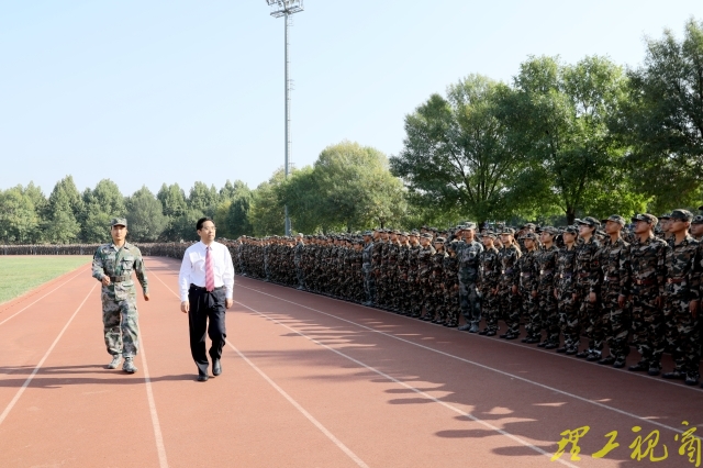 吕传毅在军训团团长冯旭东陪同下,分别对两校区共75个军训方阵进行了检阅。