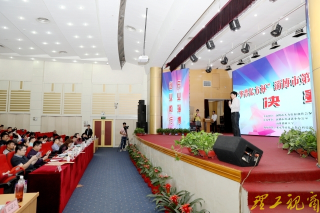 本网讯 创业前行,乐业淄博。9月27日,“华普亿方杯”第二届创客大赛决赛在我校3号教学楼报告厅举行,来自淄博市的20支创业团队参加了决赛。