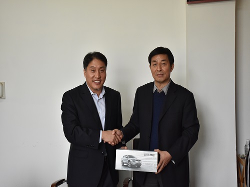 吉利集团宝鸡GEP3动力产业化基地经理张文强代表吉利集团向学校赠送了吉利汽车模型,并参观了交通学院实验室。