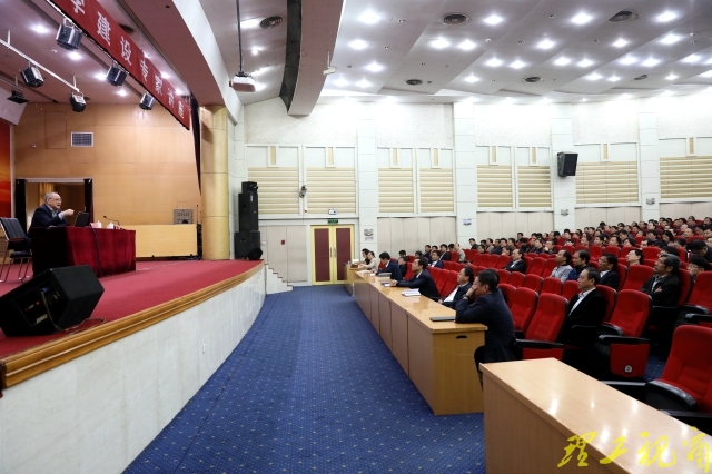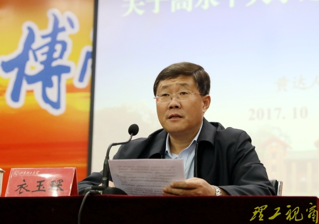 校领导吕传毅、胡兴禹、王立斌、魏修亭、易维明、张金生出席报告会,学校全体中层干部,校学术委员会委员,各学院教授委员会主任、副主任等参加报告会。报告会由校党委副书记衣玉琛主持。