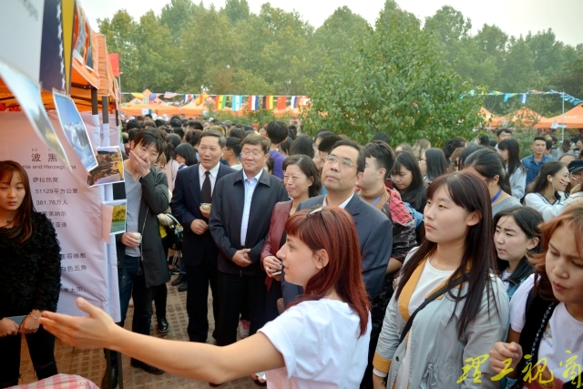 活动过程中,吕传毅、衣玉琛等领导和来宾来到各国风情园展区现场,与留学生互动,了解学生的学习和生活情况,受到留学生热烈欢迎。