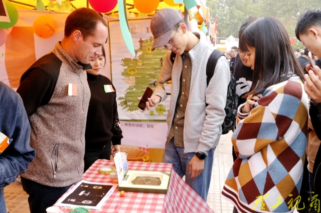各国风情展魅力纷现,来自俄罗斯、韩国、加拿大等25个国家的外籍师生,在各国展台热情展示着服饰、图片、食品、手工艺品,不出校门就能让大家尽览五大洲的风土人情。现场人头攒动、气氛热烈。
