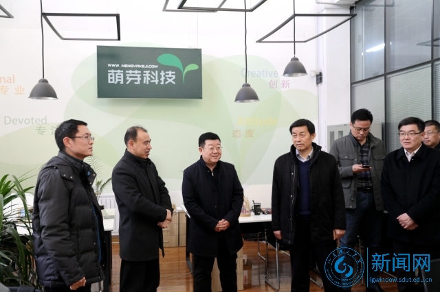 座谈会结束后,牟少岩一行在魏修亭等的陪同下,参观了“大红炉”众创空间。