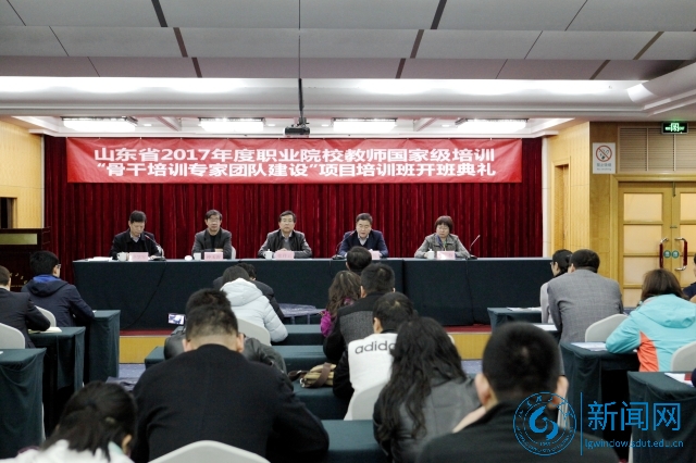 本网讯 3月12日上午,山东省2017年度职业院校教师国家级培训“骨干培训专家团队建设”项目子项目——基地主要负责人和基地管理人员培训班开班典礼,在杏园宾馆北二楼会议室举行,来自省内外31家培训基地的62位主要负责人和管理人员参加典礼。由此,我校承担的山东省2017年度职业院校教师国家级培训项目正式启动。