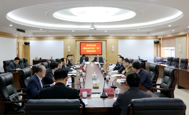 本网讯 4月9日下午,博山区委书记刘忠远、政协主席刘承志一行5人来到学校,就进一步推进博山区与我校校城融合发展进行座谈交流。校党委书记吕传毅,党委常委、副校长刘国华、易维明出席会议,学校有关职能部门负责人参加座谈会。