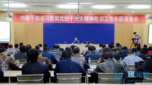 本网讯 4月18日,学校在逸夫图书馆负一层报告厅举行中层干部学习贯彻党的十九大精神轮训工作专题报告会,邀请淄博市纪委派驻第六纪检组组长吕成法作专题报告。纪委书记张金生出席并主持报告会,学校全体中层副职干部参加报告会。