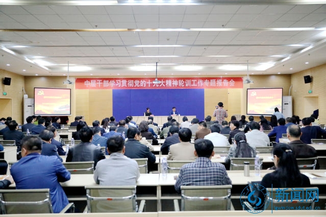 本网讯 4月25日,学校在逸夫图书馆负一层报告厅举行中层干部学习贯彻党的十九大精神轮训工作报告会,淄博市委党校马克思主义教研部副主任、淄博市委宣讲团成员王瑞芳教授受邀作专题报告。校党委副书记胡兴禹主持报告会,学校中层副职干部参加报告会。