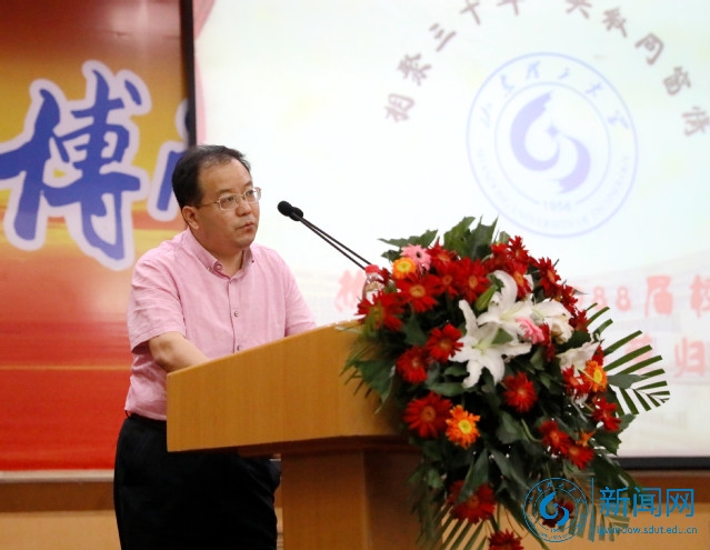 吕传毅深情地说,时间是一把“无情的刀”,它把我们曾经充满稚气的脸庞逐渐地刻满了皱纹;时间又是一把“有情的刀”,它把我们的师生情和同学情雕刻得更加细腻、更加清晰。他指出,校友是学校的标签,从地理位置上讲,校友在哪里,母校就在哪里,今年年初,山东理工大学的校旗跟随2008级校友王志良一起飘扬在南极上空;从品质上讲,校友是什么,母校就是什么,不同学校培养的学生身上有不一样的“味道”和禀赋,希望校友们把学校的形象打造得越来越靓;从层次和水平上讲,校友有多高,母校就有多高,校友们在各行各业为母校增光添彩,校友与母校一荣俱荣,校友走得越远、飞得越高,母校的事业发展就越成功。