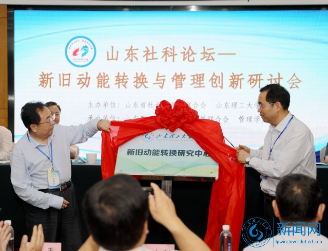 会上,举行了“山东理工大学新旧动能转换研究中心”揭牌仪式,周忠高、吕传毅为中心揭牌。