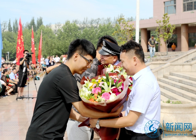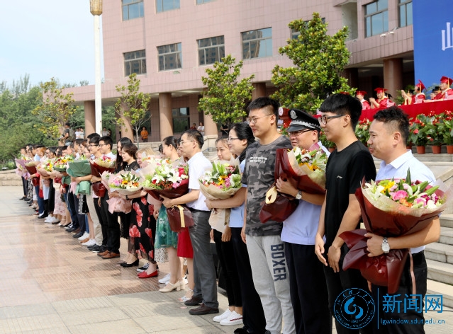 在《感恩的心》乐曲声中,毕业生代表为24名教职工代表献上鲜花,感谢他们的悉心培养。