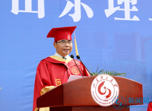 他说,回首郁郁葱葱的青春年华,毕业生用拼搏让世界倾听“梦想花开”的声音,用行动创造了山理工的“经典咏流传”。他分享了用大爱书写中国青年人道担当的桑军帅、强化诚信建设的资源循环1401班等个人和集体勇于追梦、勤于圆梦的故事,并感谢大家在校期间为学校所作的贡献。