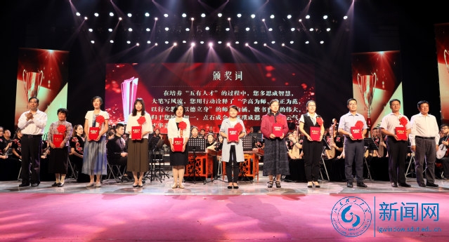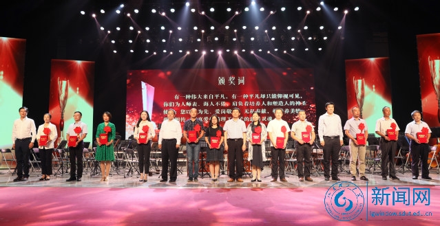 本网讯 弘扬高尚师德,潜心立德树人。9月10日晚,学校在大学生艺术中心礼堂举行“齐风韶韵师德颂”2018年教师节颁奖音乐会,表彰优秀代表,送上真挚祝福,庆祝第34个教师节。