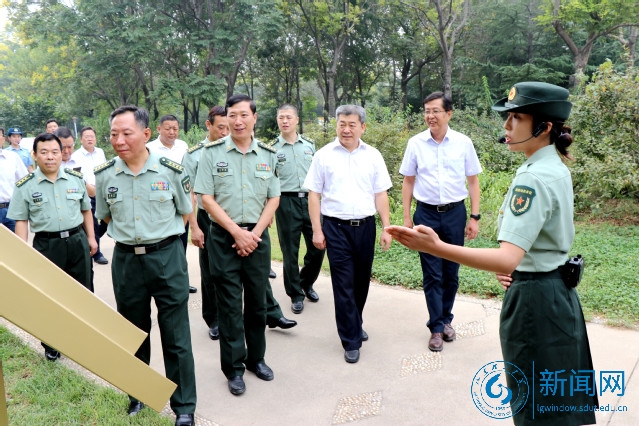 王可杰宣布山东理工大学国防教育主题园启用,王培泉、曹晓明、王可杰、张祥云共同为我校国防教育主题园揭牌。